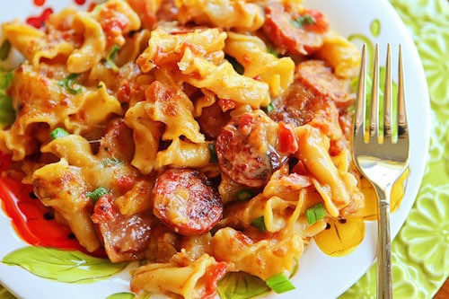This tasty recipe uses turkey sausage to keep flavor while reducing calories and fat. Cover with low-fat cheese for a decadent but low-cal comfort dish.