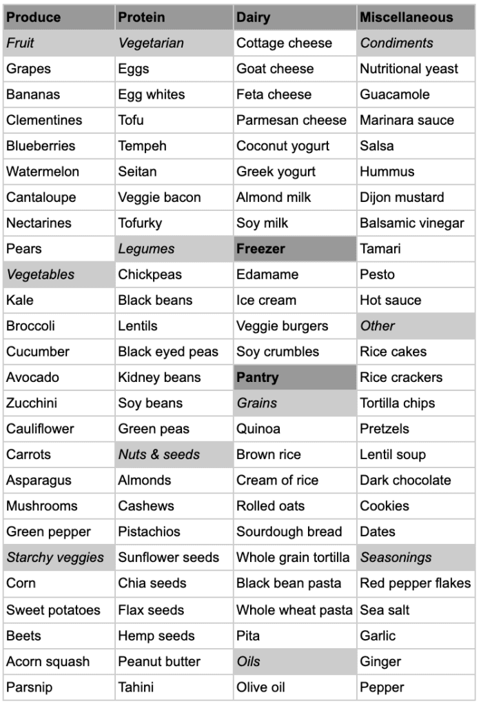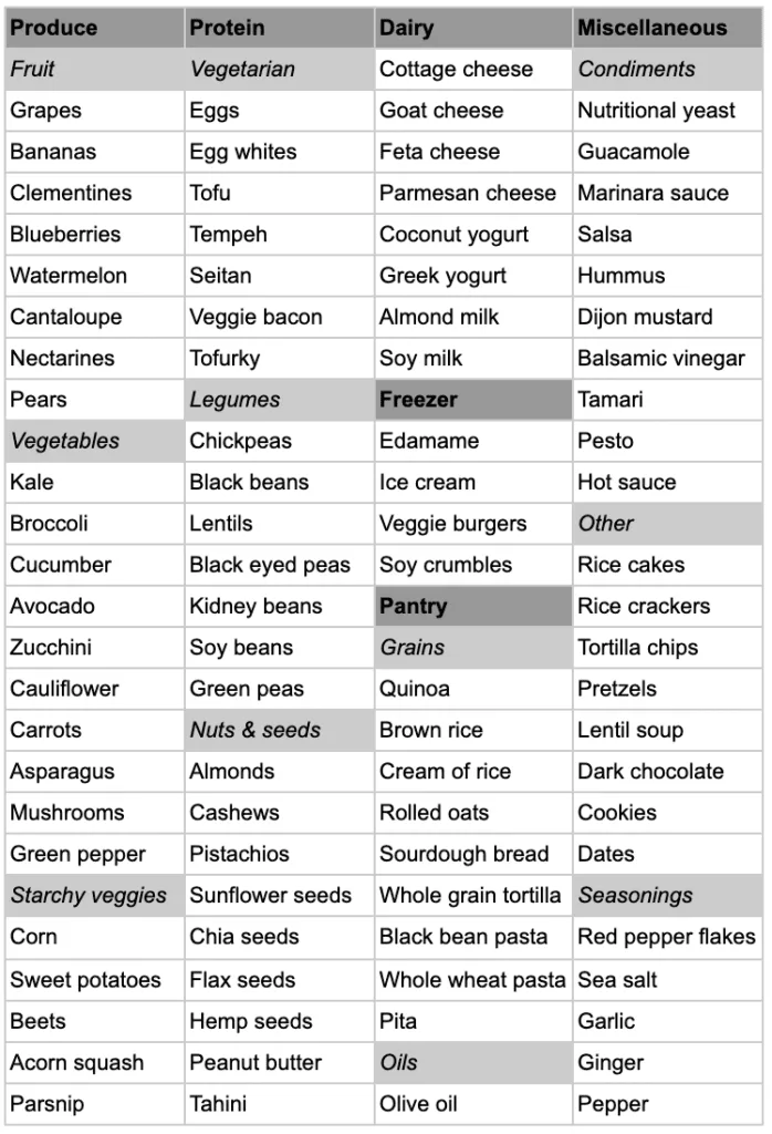 Vegetarian Grocery List