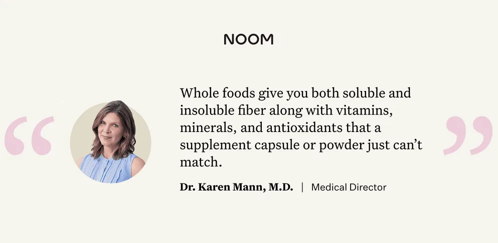 “Most people only think of fiber for its role in digestion,” says Karen Mann, MD, Medical Director at Noom. “From heart health to blood sugar regulation and even weight loss, fiber is an underappreciated component of maintaining a healthy lifestyle.”
