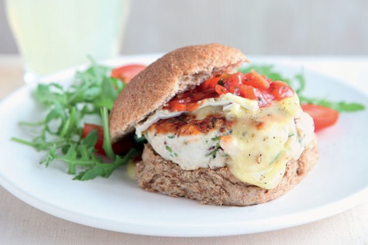 - Serve the burgers in the buns topped with Brie and a spoonful of spicy salsa.