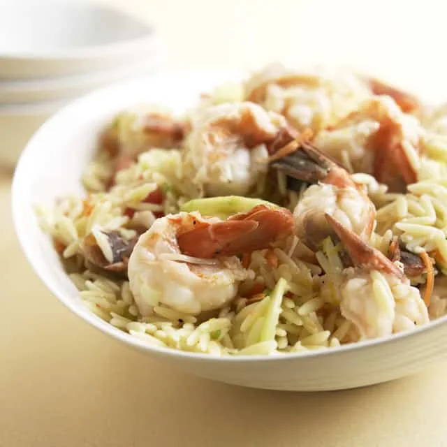 Step 1: Bring a large pot of water to a boil over medium-high heat. Add the orzo and cook for 6 minutes. Add the shrimp and cook for 2 minutes longer, or until the shrimp turn pink and the orzo is al dente. Drain well and allow to cool slightly.