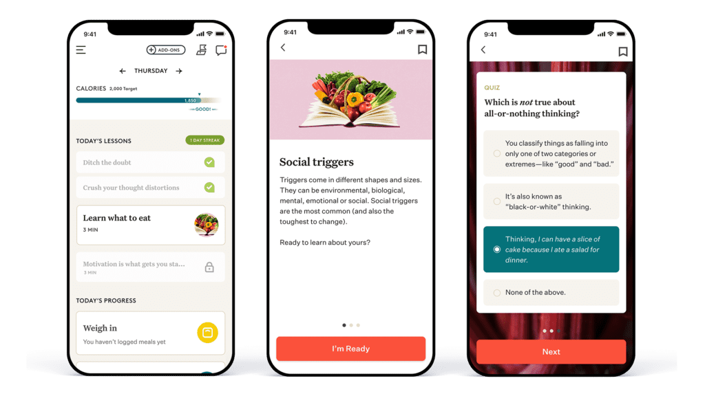 You’ll get exercises, quizzes or tasks to complete, and insights into the root causes of your eating habits. All based on the gold standard in behavioral science.