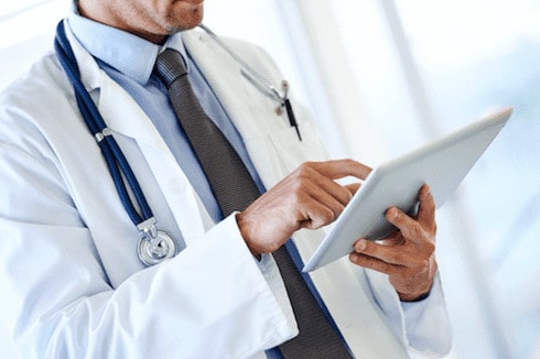 Arzt mit Tablet(orale Therapie), obwohl es noch einen Weg zurück gäbe. Häufig besteht diese Möglichkeit der vollen Erholung ab dem Zeitpunkt einer Insulintherapie nicht mehr, da dann teils die Beta-Zellen (Pankreas) schon zu stark beschädigt sind. Es gibt aber immer Ausnahmen.