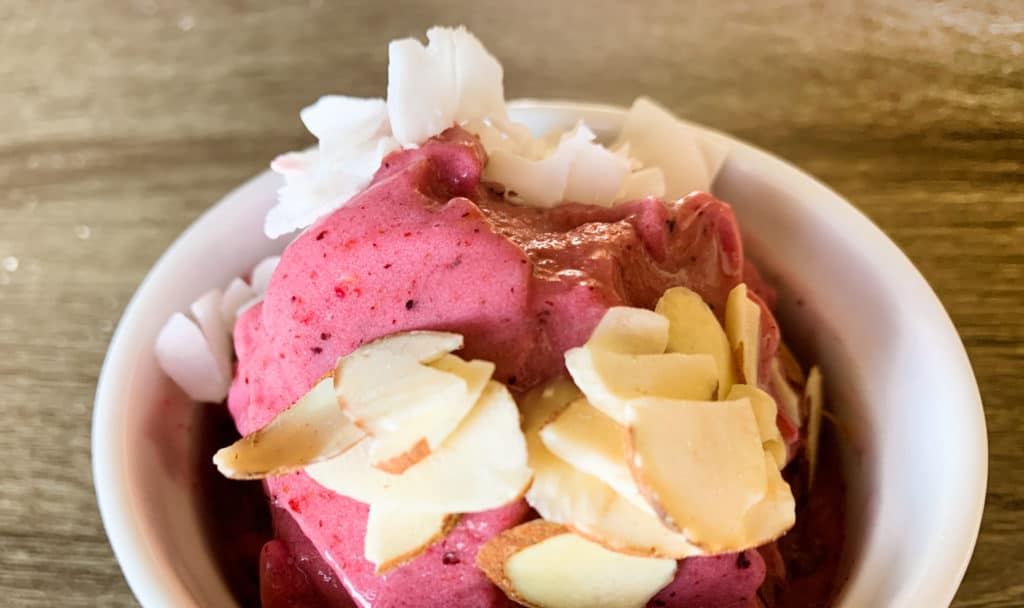Helado de plátano con frambuesa