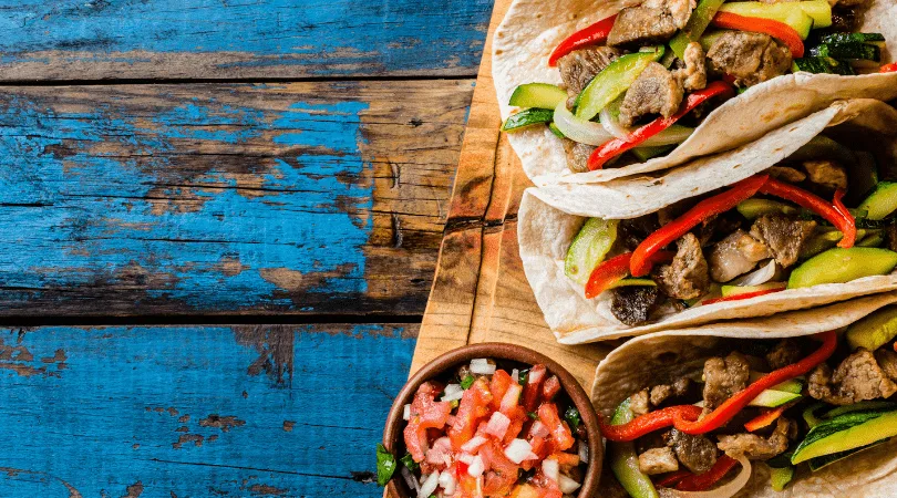 - Calentar las tortillas en un sartén o microondas (un minuto aprox), agregarles la carne, junto con los vegetales y el pico de gallo.