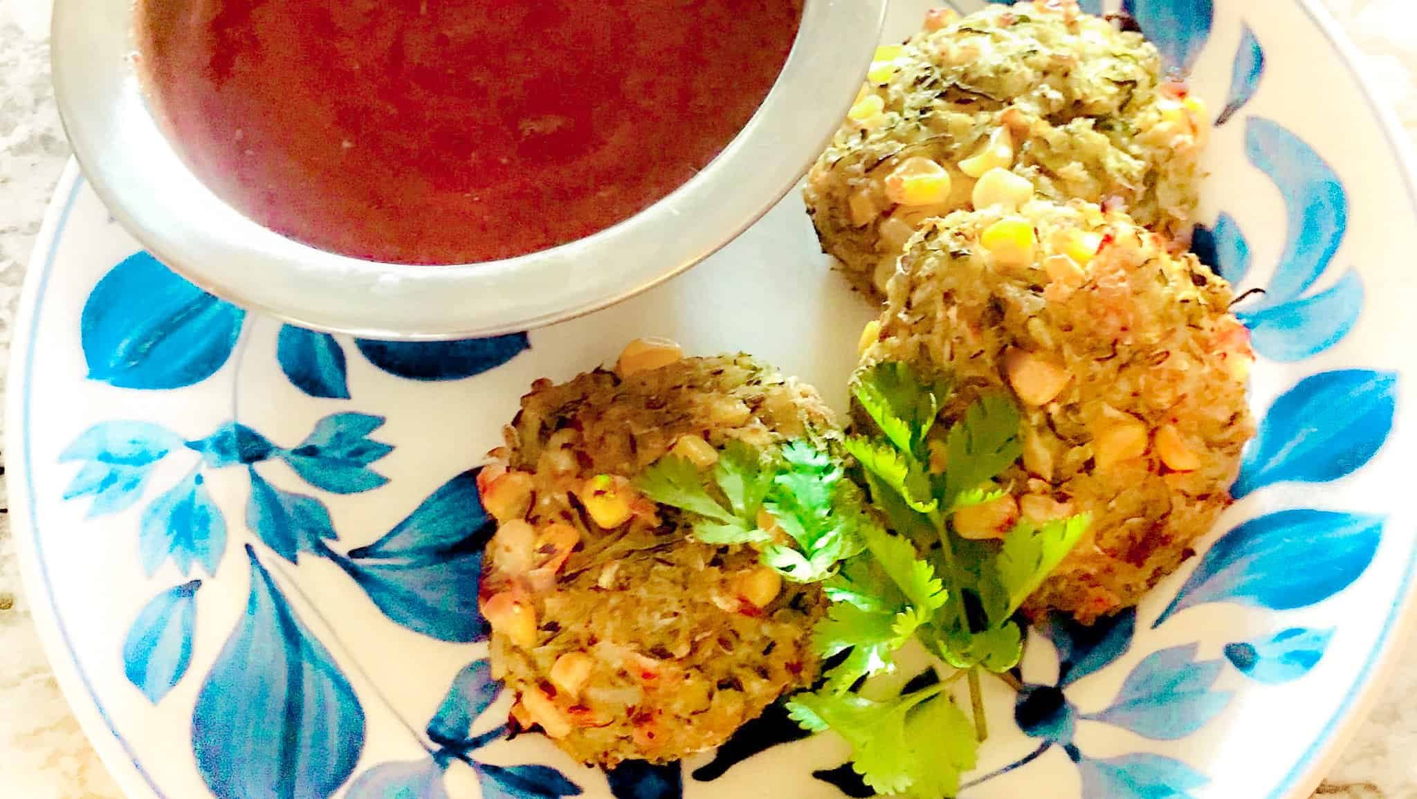 Tortitas de calabacín y maíz con salsa chipotle