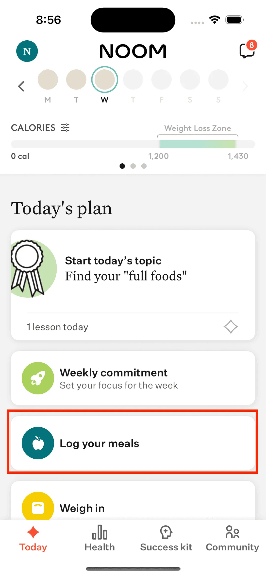 - Logging meals, recipes, or past entries happens via Today’s plan > Log your meals.